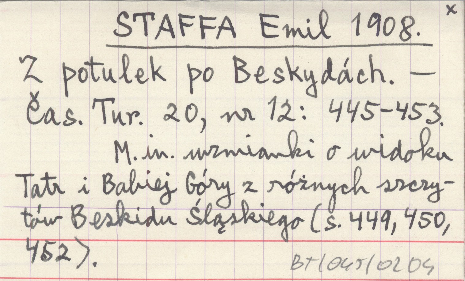 Časopis Turistů, 20, nr 12: 445-453. M. in. wzmianki o widoku Tatr i Babiej Góry z różnych szczytów Beskidu Śląskiego (s. 449, 450, 452).