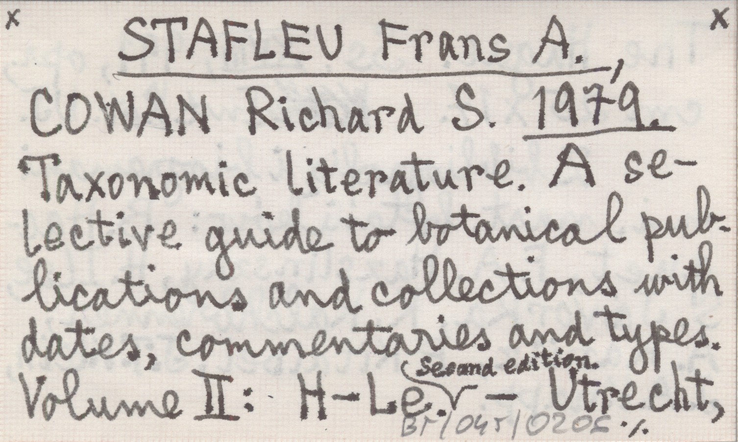 STAFLEU Frans A. COWAN, Richard S. ; 1979 Taxonomic literature. A selective guide to botanical publications and collections with dates, commentaries and types. Volume II: H-Le.