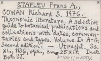STAFLEU Frans A. COWAN, Richard S. ; 1976 Taxonomic literature. A selective guide to botanical publications and collections with dates, commentaries and types. Volume I: A-G.