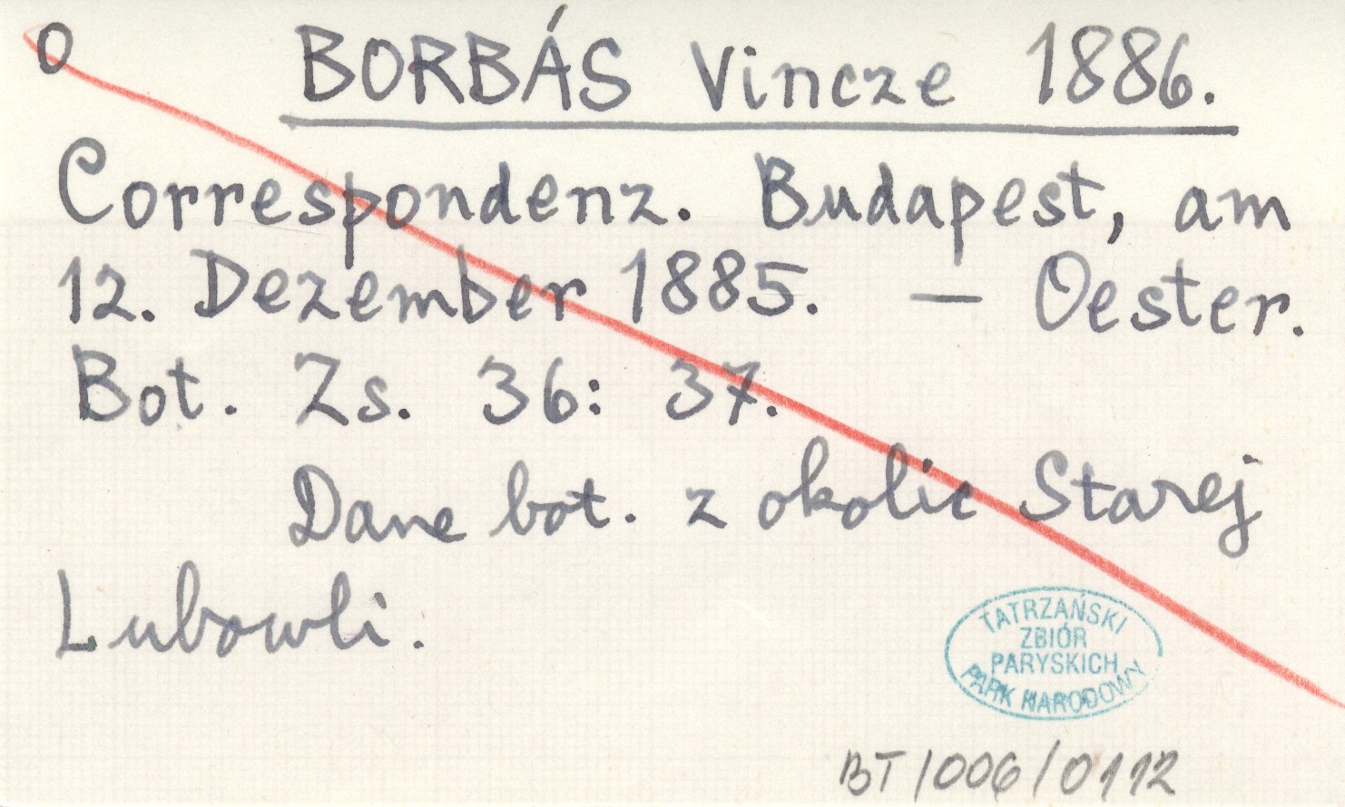 BORBÁS Vincze 1886 Correspondenz. Budapest, am 12. Dezember 1885.