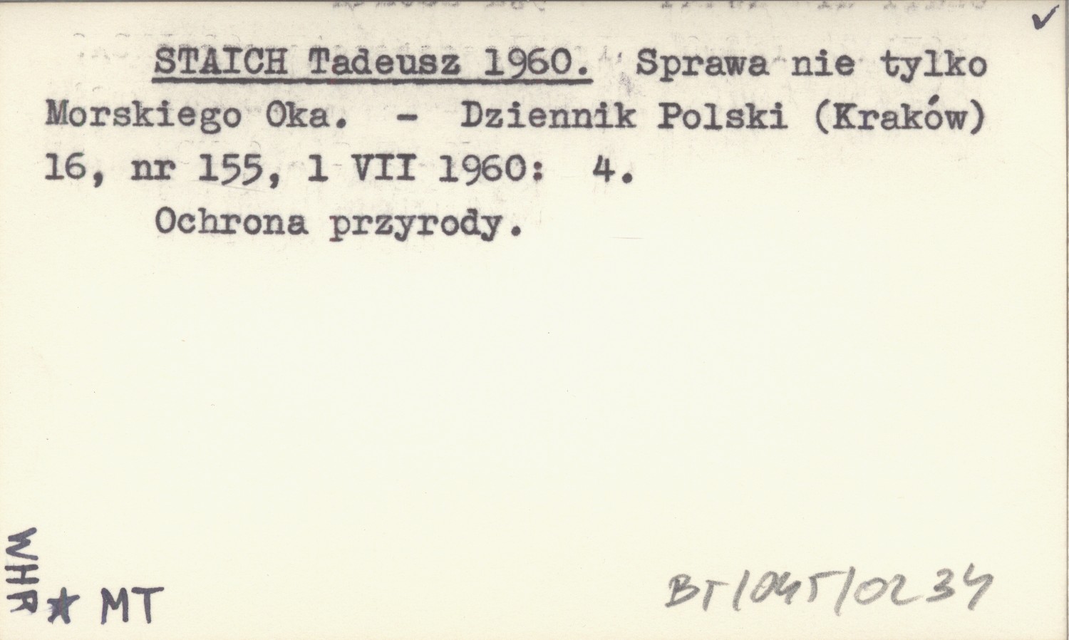 Dziennik Polski (Kraków) , 16, nr 155 (1 VII 1960): 4. Ochrona przyrody.