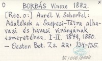 BORBÁS Vincze 1882 Aurél V. Scherfel: Adalékok a Szepesi-Tátra alhavasi és havasi virányának ismeretéhez. I-II. 1879, 1880.