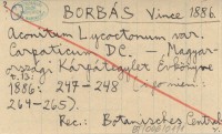 BORBÁS Vince 1886 Aconitum Lycoctonum var. Carpaticum DC.