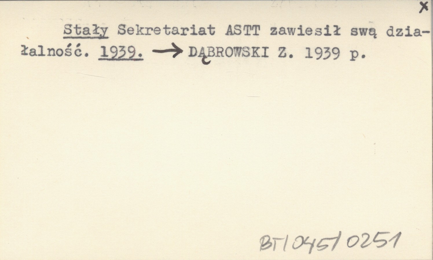 Stały Sekretariat ASTT zawiesił swą działalność. 1939