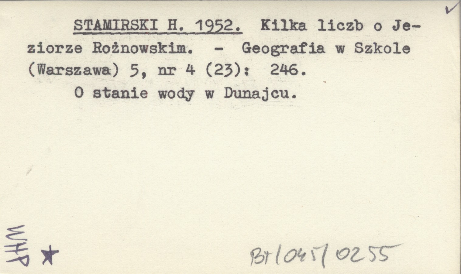 STAMIRSKI H. 1952 Kilka liczb o Jeziorze Rożnowskim.