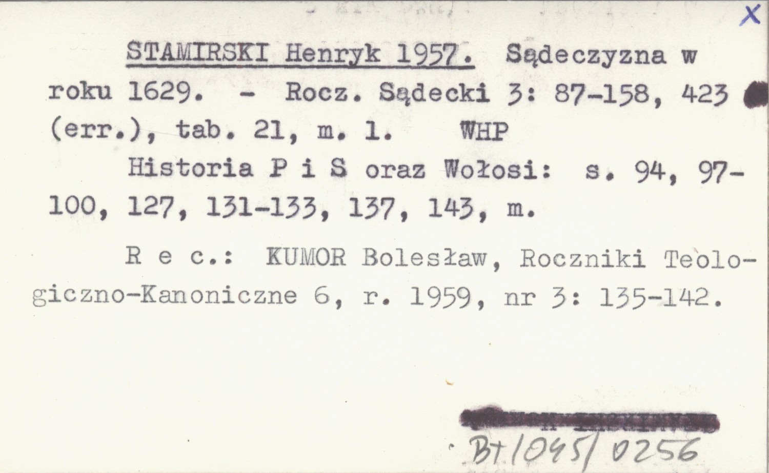 Rocznik Sądecki, 3: 87-158, 423 (err.), 21 k., 1 mapa. Historia Podhala i Spisza oraz Wołosi: s. 94, 97-100, 127, 131-133, 137, 143, mapa. REC: KUMOR Bolesław, Roczniki Teologiczno-Kanoniczne 6 (1959), nr 3: 135-142.