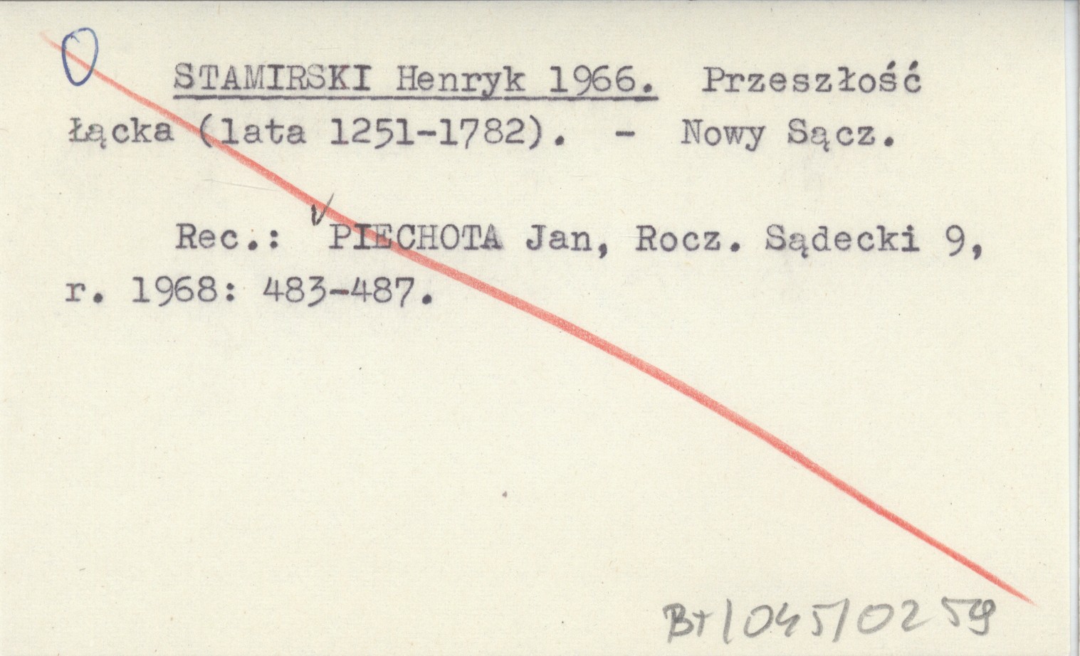 REC: PIECHOTA Jan, Rocznik Sądecki 9 (1968): 483-487.