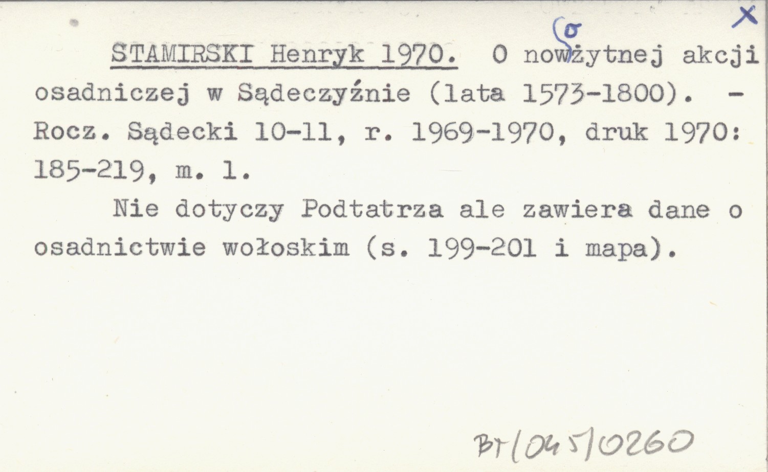 STAMIRSKI Henryk 1970 O nowożytnej akcji osadniczej w Sądeczyźnie (lata 1573-1800).