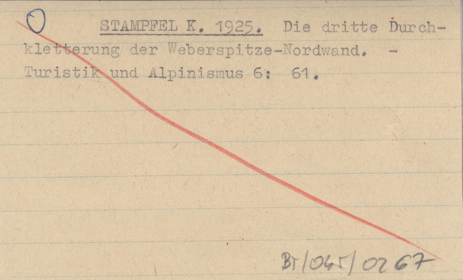 STAMPFEL K. 1925 Die dritte Durchkletterung der Weberspitze-Nordwand.