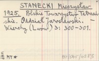 STANECKI Mieczysław 1925 Polskie Towarzystwo Tatrzańskie. Oddział Jarosławski.