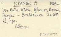 STANEK O. 1969... Die Hohe Tatra. Blumen, Baume, Berge.