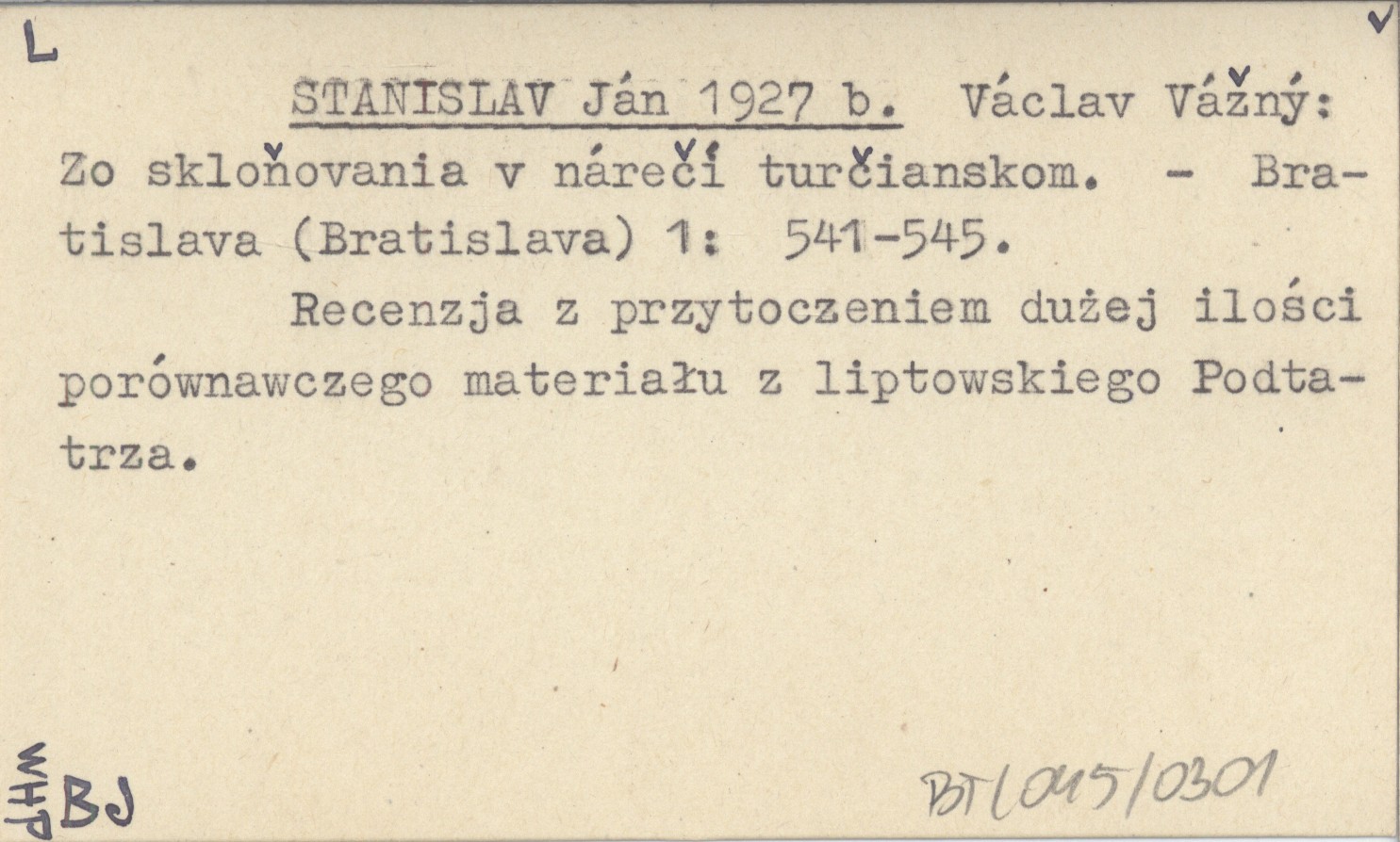STANISLAV Ján 1927 b Václav Vážný: Zo skloňovania v nárečí turčianskom.