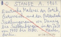STANGE A. 1961 Deutsche Malerei der Gotik, Österreich und der Ostdeutsche Siedlungsraum von Danzig bis Siebenbürgen in der Zeit von 1400 bis 1500.