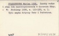 STANGENBERG Marian 1958 Zasoby wodne i stan ich zanieczyszczenia w dorzeczu Odry.