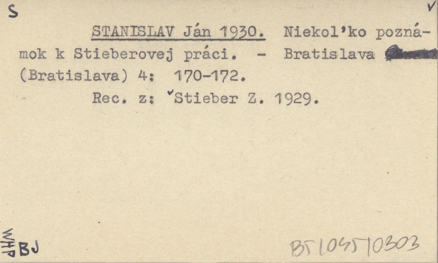STANISLAV Ján 1930 Niekoľko poznámok k Stieborovej práci.