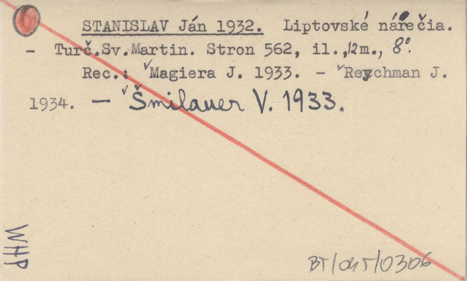 Turčiansky Svätý Martin , 562, il., 12 map, 8°. REC: MAGIERA J. 1933 ; REYCHMAN J. 1934 ; ŠMILAUER V. 1933 ;