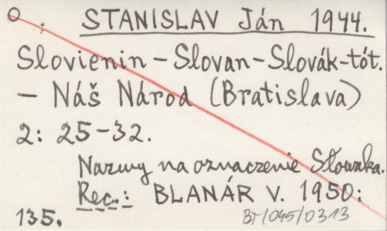 Náš Národ (Bratislava) , 2: 25-32. Nazwy na oznaczenie Słowaka. REC: BLANÁR V. 1950: 135