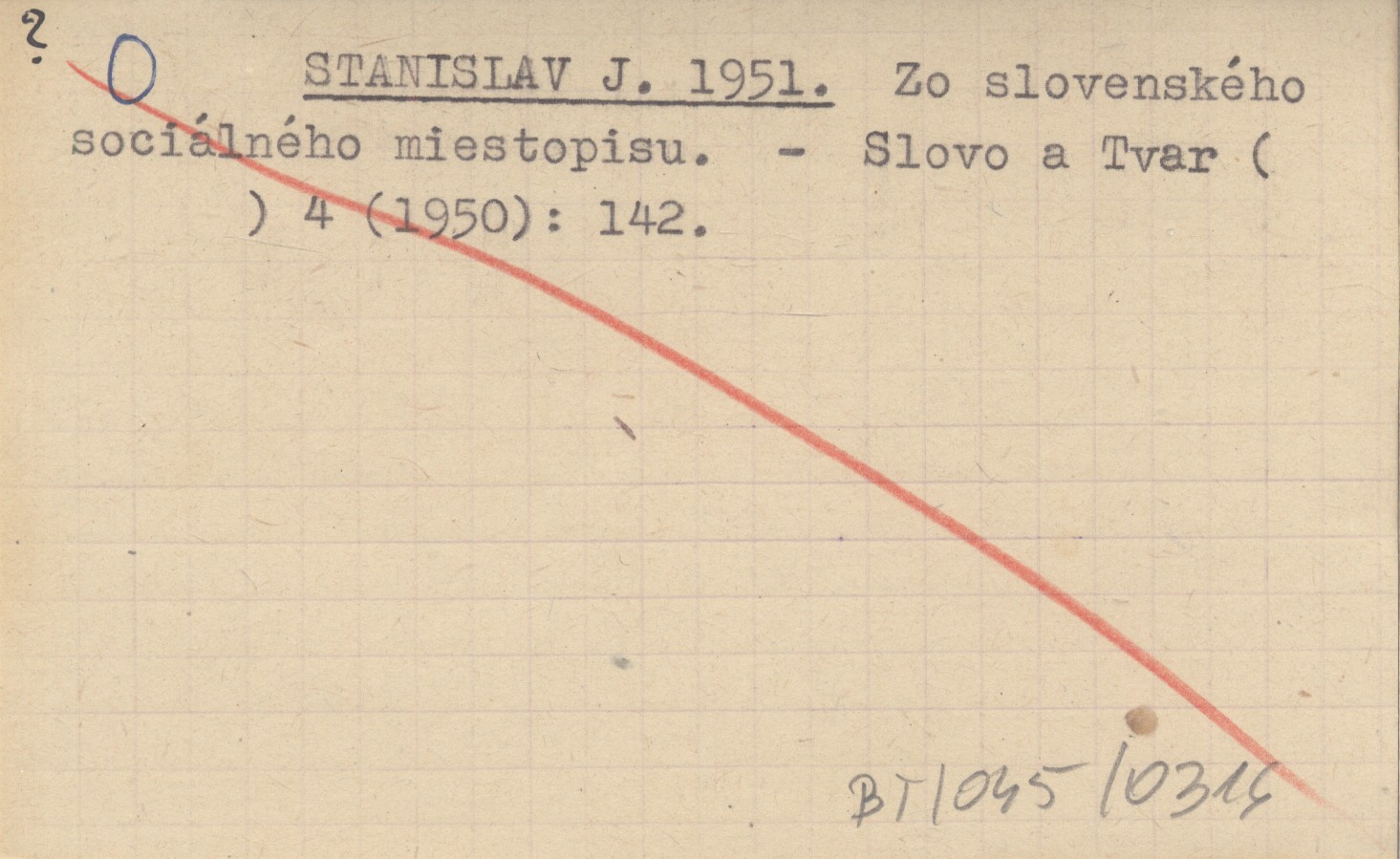 STANISLAV J. 1951 Zo slovenského sociálneho miestopisu.
