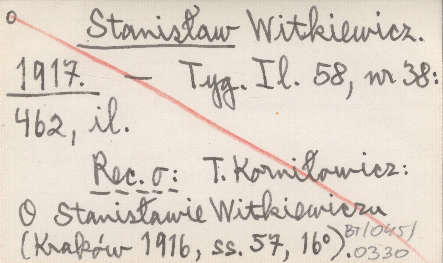 Tygodnik Illustrowany, 58, nr 38: 462, il. Recenzja o: T. Korniłowicz: O Stanisławie Witkiewiczu (Kraków 1916, 57 s., 16°).