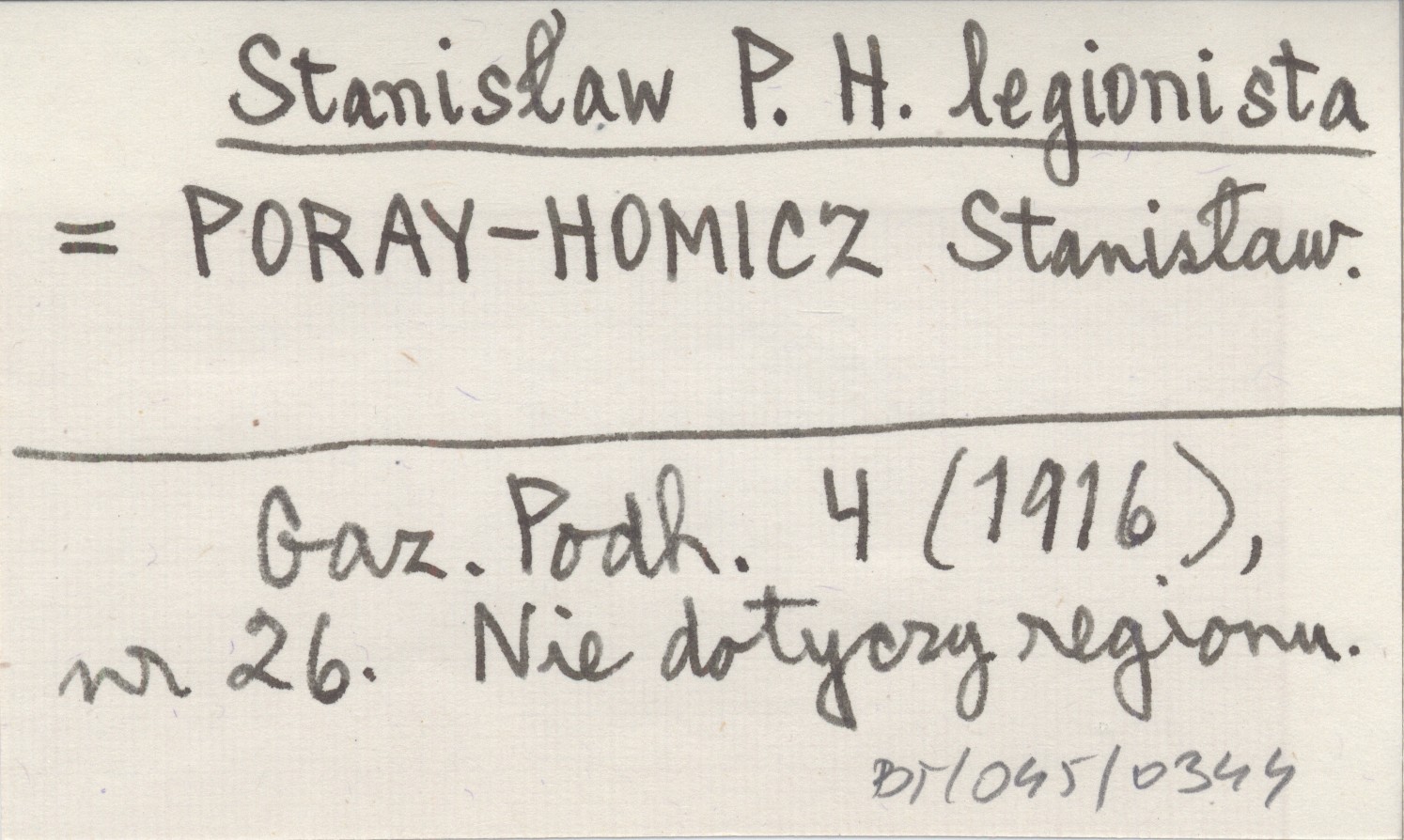 Stanisław P. H. legionista PORAY-HOMICZ Stanisław Gazeta Podhalańska 4 (1916), nr 26. Nie dotyczy regionu.