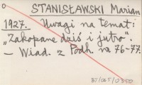 STANISŁAWSKI Marian 1927 Uwagi na temat: "Zakopane dziś i jutro".