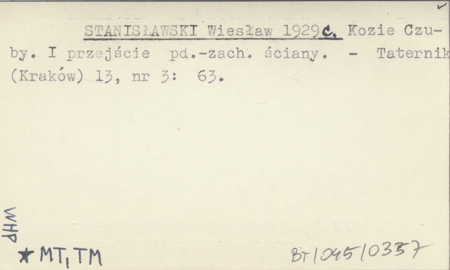 STANISŁAWSKI Wiesław 1929 c Kozie Czuby. I przejście pd.-zach. ściany.