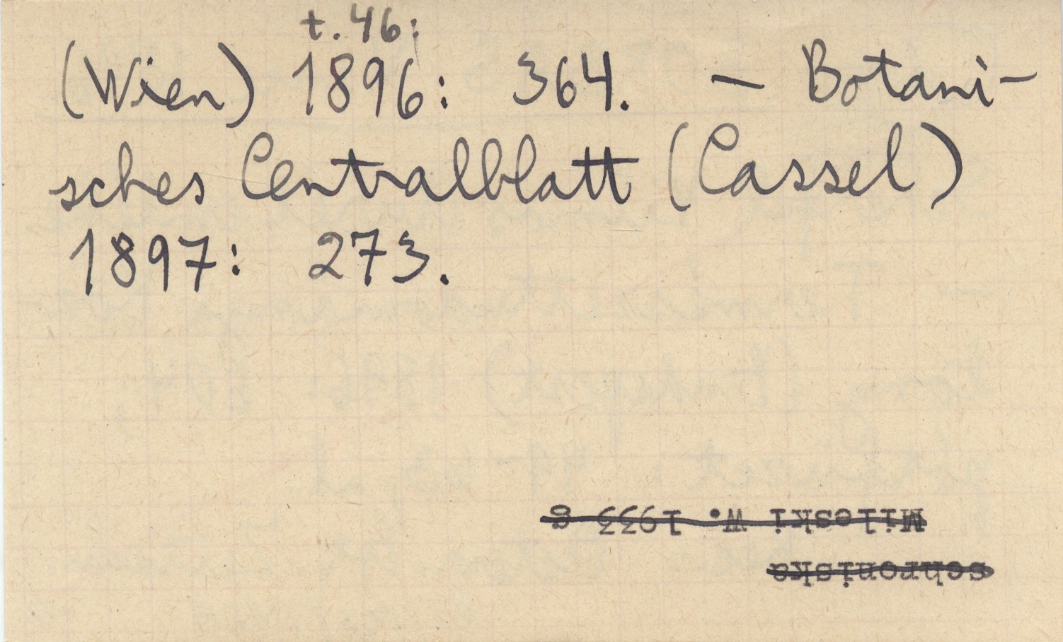 REC: Österreichischen Botanischen Zeitschrift (Wien) t. 46 (1896): 364.- Botanisches Centralblatt (Cassel) 1897: 273.