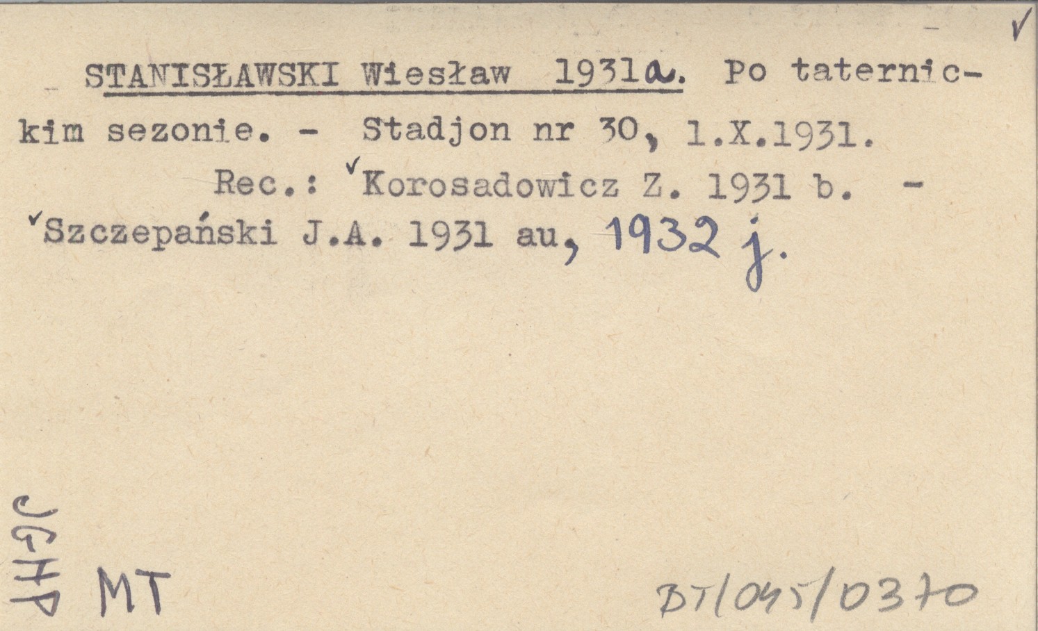 Stadjon (Nr 30 (1 X 1931).) , REC: KOROSADOWICZ Z. 1931 b ; SZCZEPAŃSKI J. A. 1931 au, 1932 j ;
