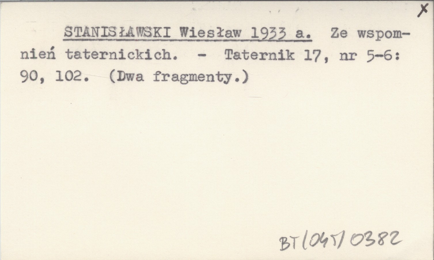 STANISŁAWSKI Wiesław 1933 a Ze wspomnień taternickich.