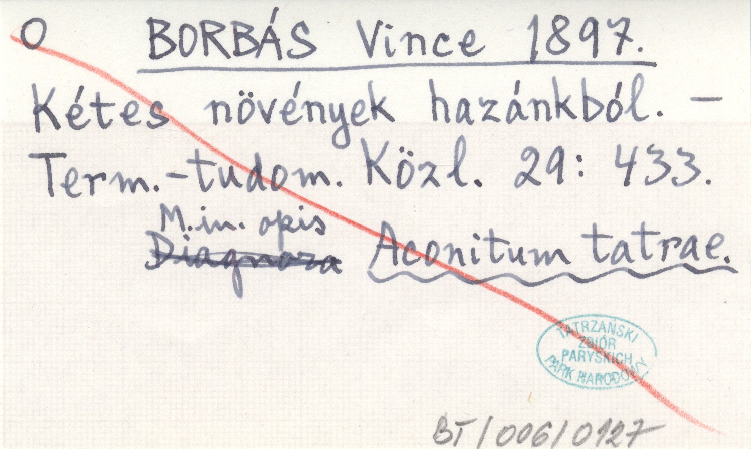 Természet-tudományi Közlöny, 29: 433. M. in. opis Aconitum tatrae.