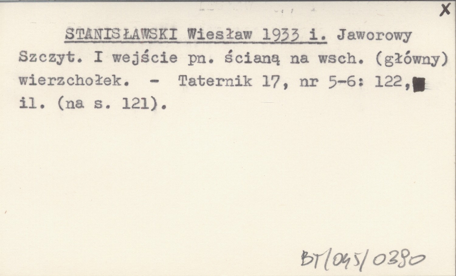STANISŁAWSKI Wiesław 1933 i Jaworowy Szczyt. I wejście pn. ścianą na wsch. (główny) wierzchołek.