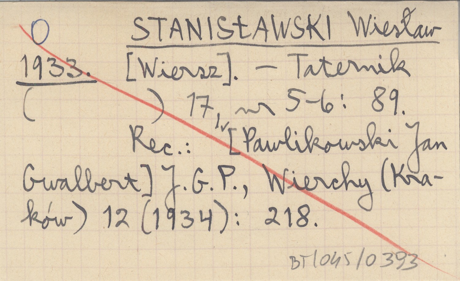 Taternik, 17, nr 5-6: 89. REC: [PAWLIKOWSKI Jan Gwalbert] J. G. P., Wierchy (Kraków) 12 (1934): 218.