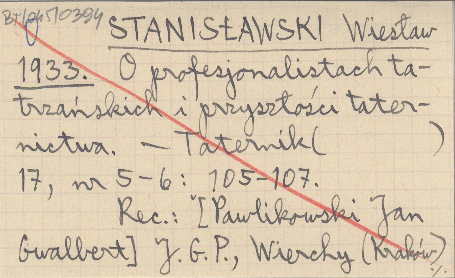 Taternik, 17, nr 5-6: 105-107. REC: [PAWLIKOWSKI Jan Gwalbert] J. G. P., Wierchy (Kraków) 12 (1934): 218.