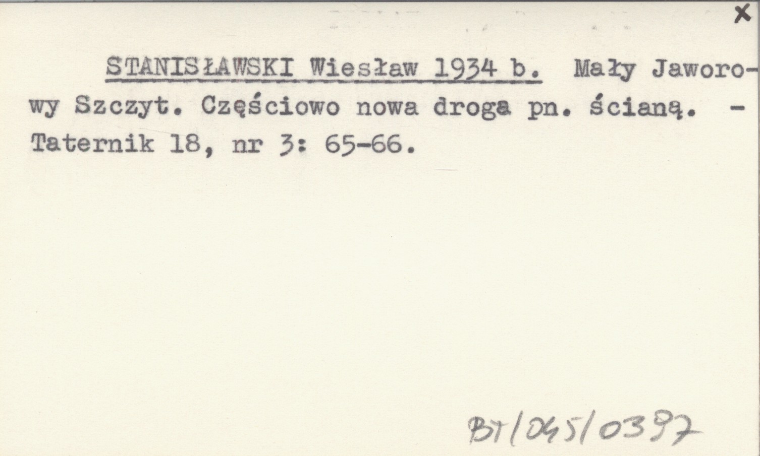 STANISŁAWSKI Wiesław 1934 b Mały Jaworowy Szczyt. Częściowo nowa droga pn. ścianą.
