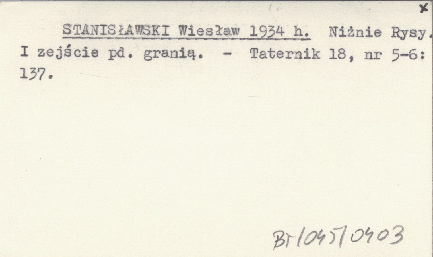 STANISŁAWSKI Wiesław 1934 h Niżnie Rysy. I zejście pd. granią.