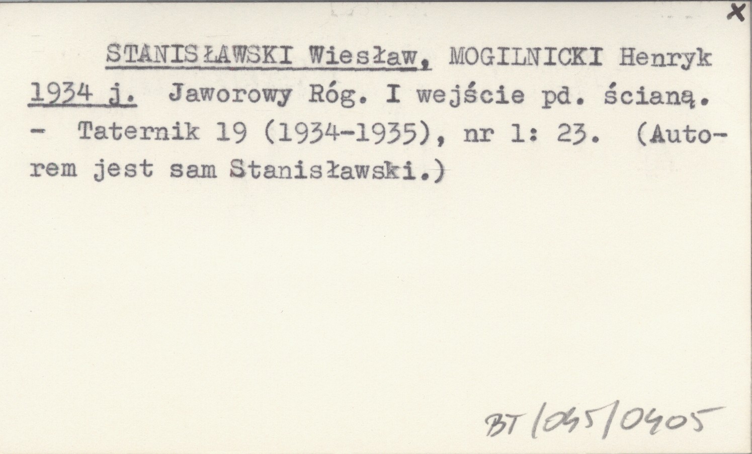 STANISŁAWSKI Wiesław MOGILNICKI, Henryk. ; 1934 j Jaworowy Róg. I wejście pd. ścianą.