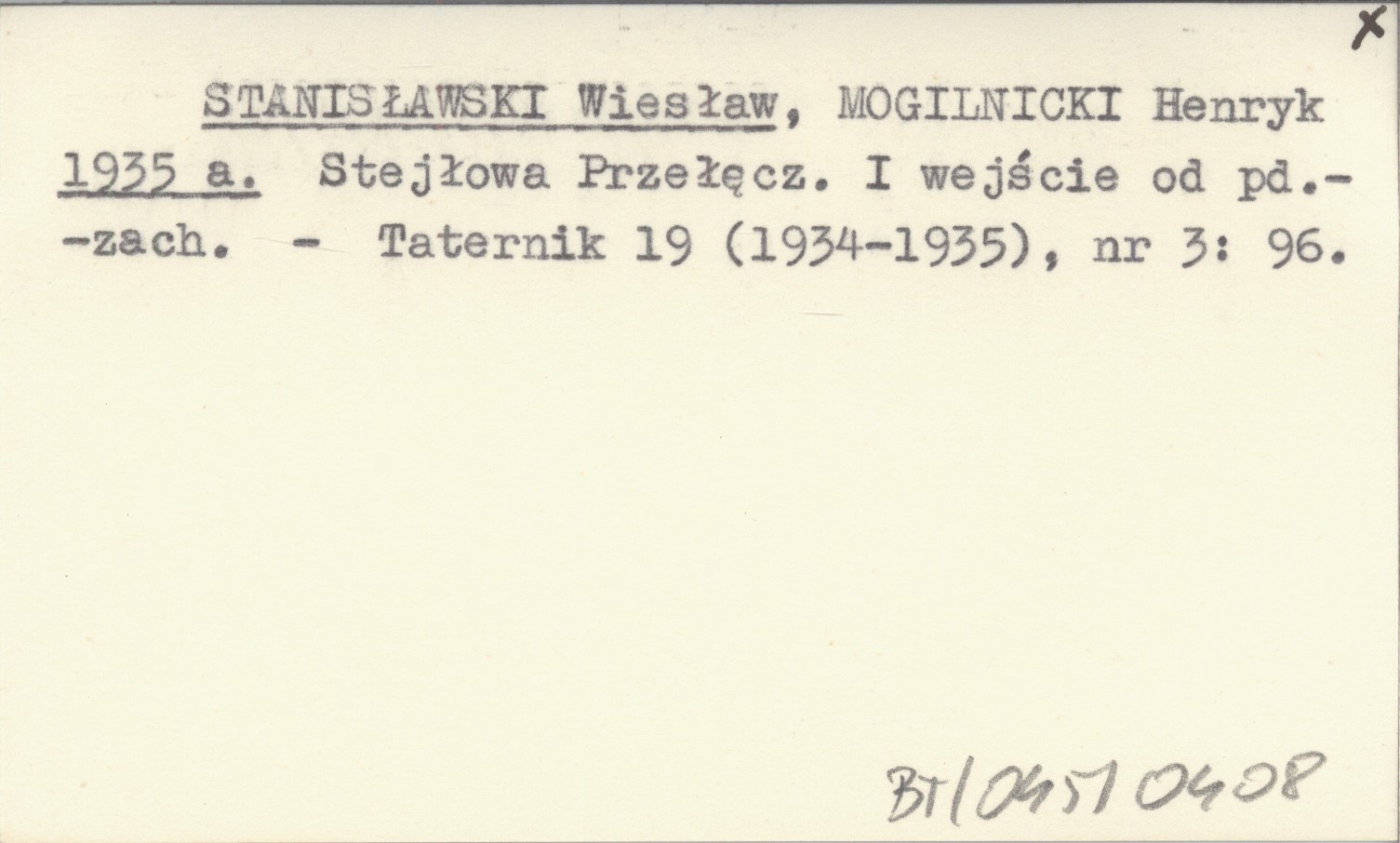STANISŁAWSKI Wiesław MOGILNICKI, Henryk. ; 1935 a Stejłowa Przełęcz. I wejście od pd.-zach.