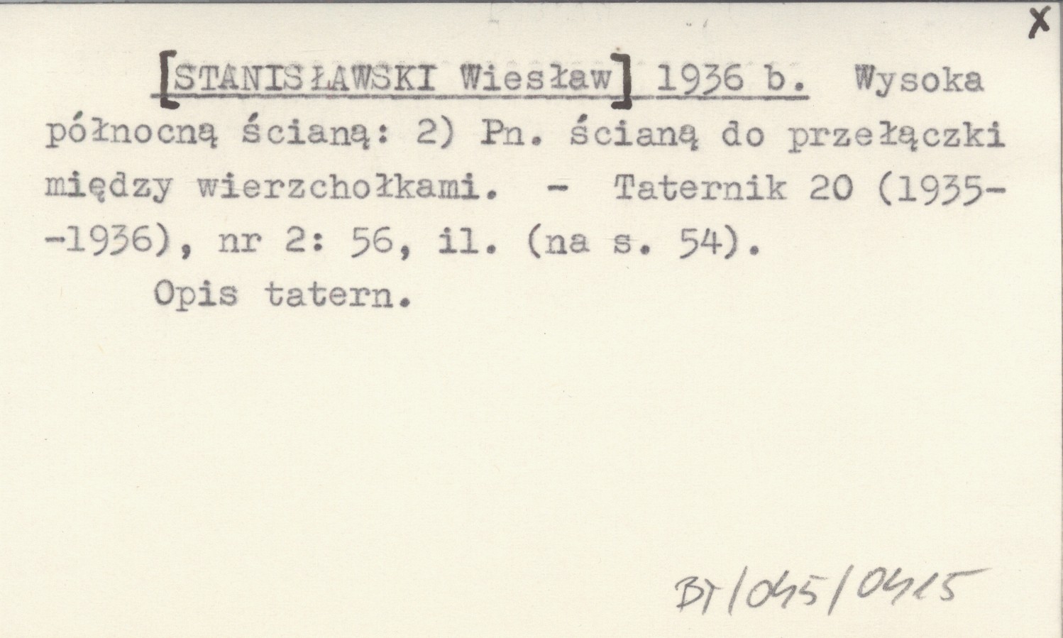 [STANISŁAWSKI Wiesław] 1936 b Wysoka północną ścianą: 2) Pn. ścianą do przełączki między wierzchołkami.