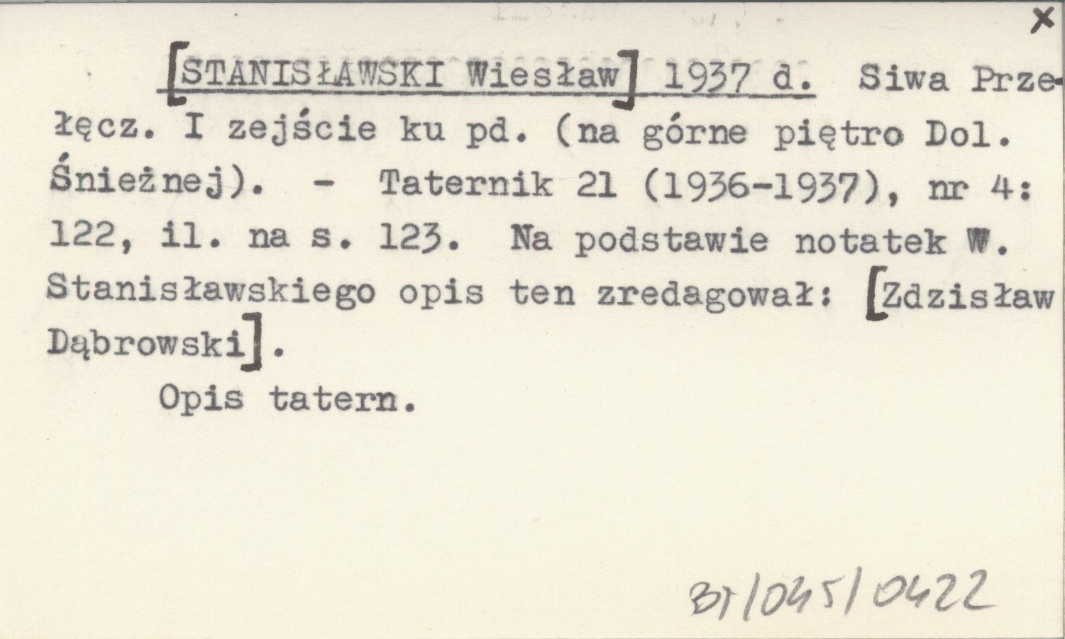 [STANISŁAWSKI Wiesław] 1937 d Siwa Przełęcz. I zejście ku pd. (na górne piętro Dol. Śnieżnej).