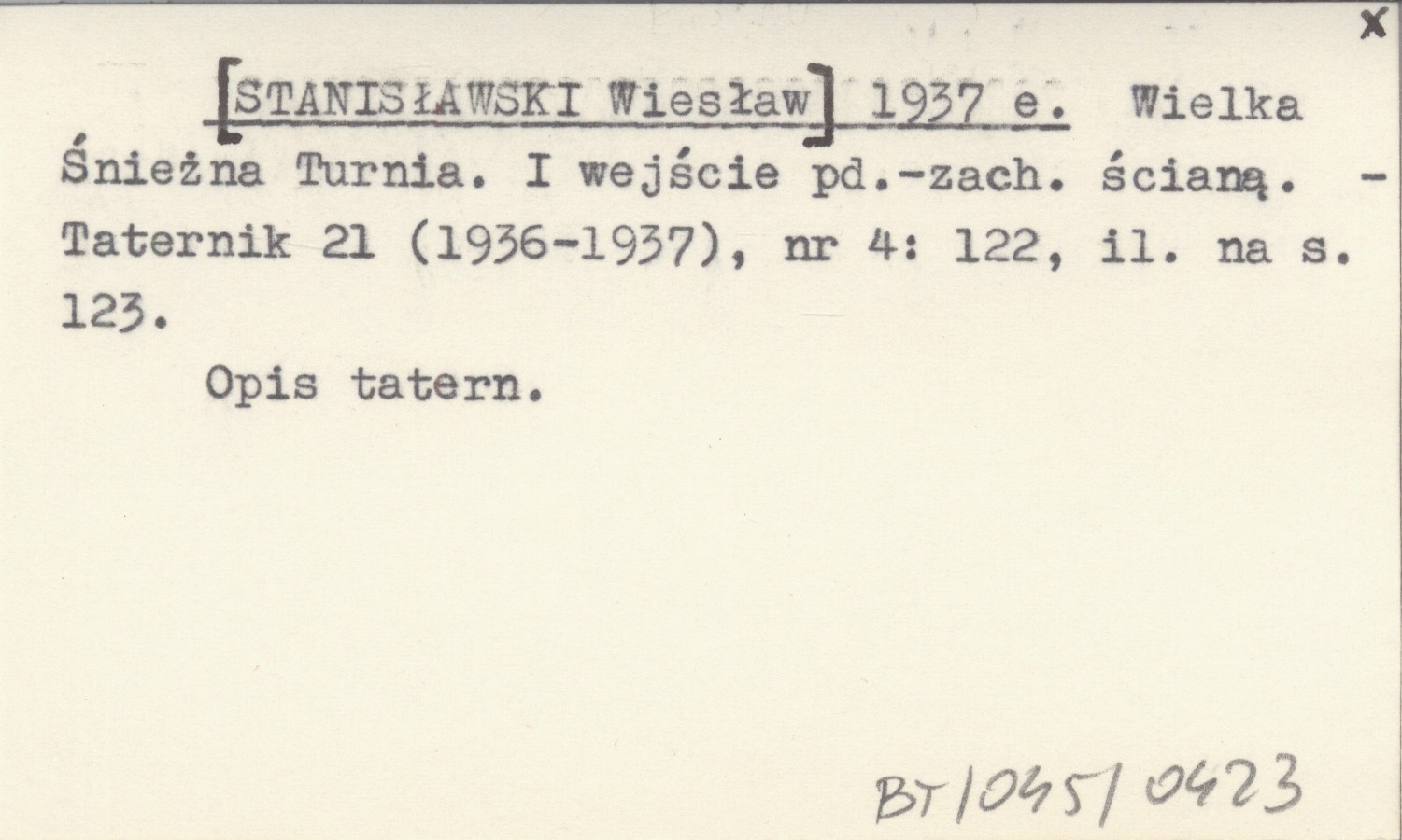 [STANISŁAWSKI Wiesław] 1937 e Wielka Śnieżna Turnia. I wejście pd.-zach. ścianą.