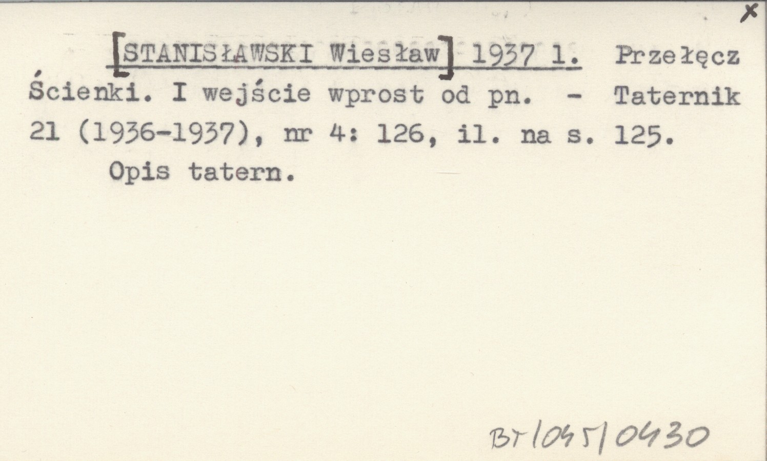 [STANISŁAWSKI Wiesław] 1937 l Przełęcz Ścienki. I wejście wprost od pn.