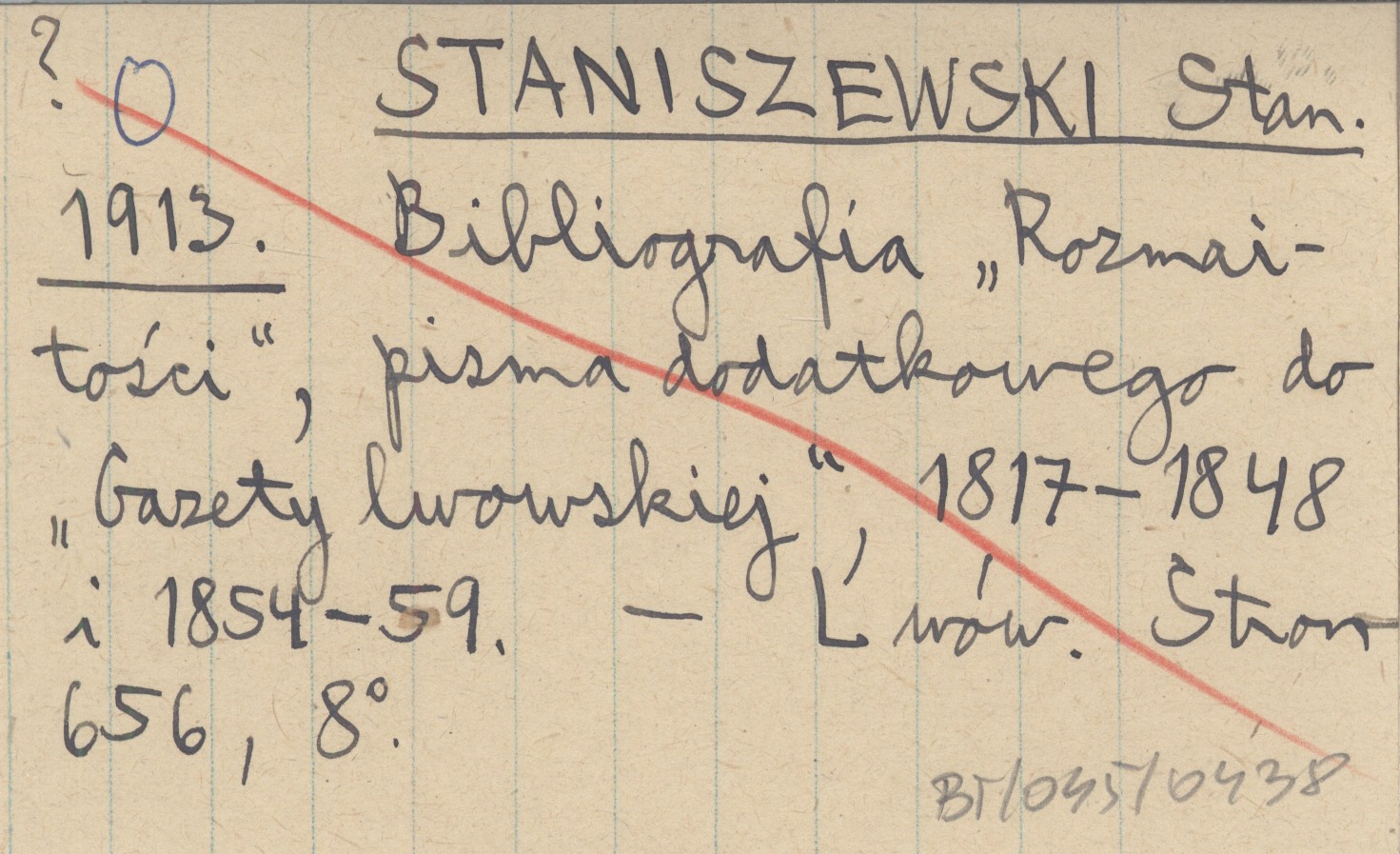 STANISZEWSKI Stan. 1913 Bibliografia "Rozmaitości", pisma dodatkowego do "Gazety lwowskiej", 1817-1848 i 1854-59.