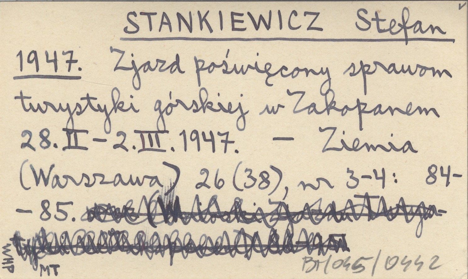 STANKIEWICZ Stefan 1947 Zjazd poświęcony sprawom turystyki górskiej w Zakopanem 28 II-2 III 1947.