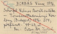 BORBÁS Vince 1896 Scherfel Vilmos Aurél emléke.