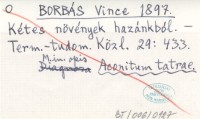 BORBÁS Vince 1897 Kétes növények hazánkból.