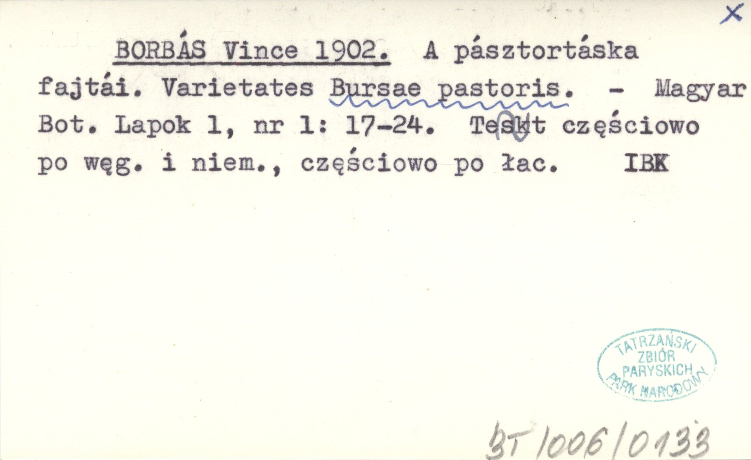BORBÁS Vince 1902 A pásztortáska fajtái. Varietates Bursae pastoris.
