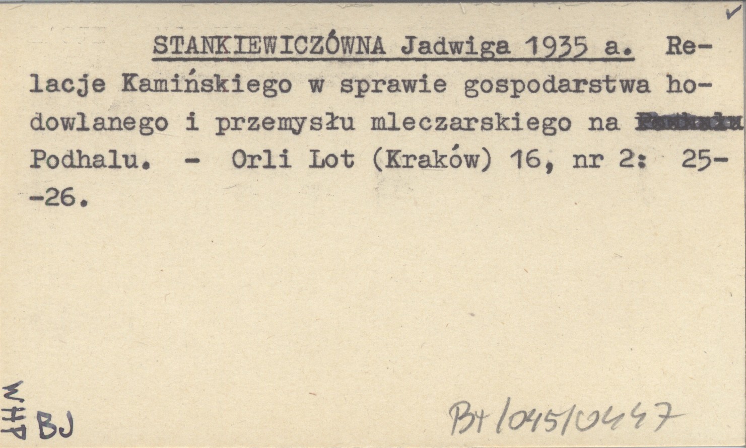 STANKIEWICZÓWNA Jadwiga 1935 a Relacje Kamińskiego w sprawie gospodarstwa hodowlanego i przemysłu mleczarskiego na Podhalu.