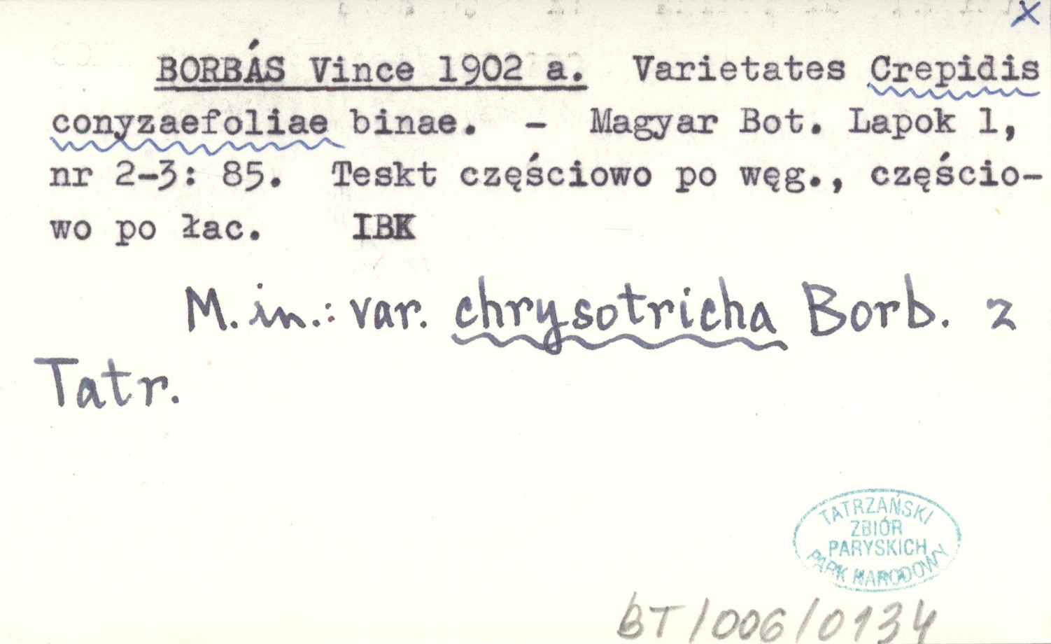 BORBÁS Vince 1902 a Varietates Crepidis conyzaefoliae binae.