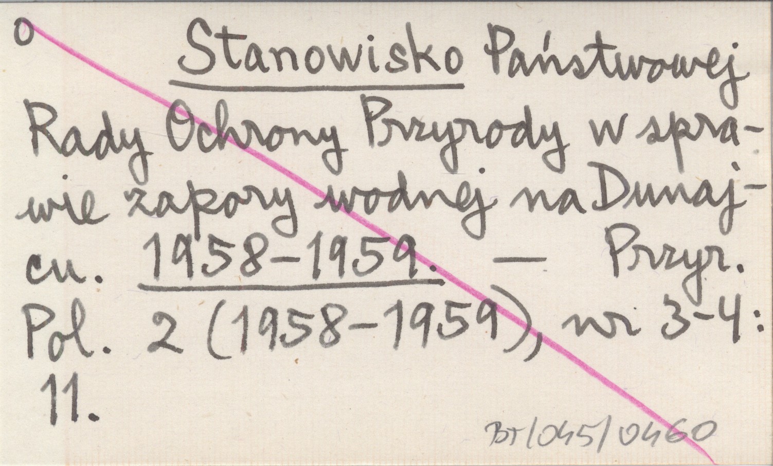 Stanowisko Państwowej Rady Ochrony Przyrody w sprawie zapory wodnej na Dunajcu. 1958-1959