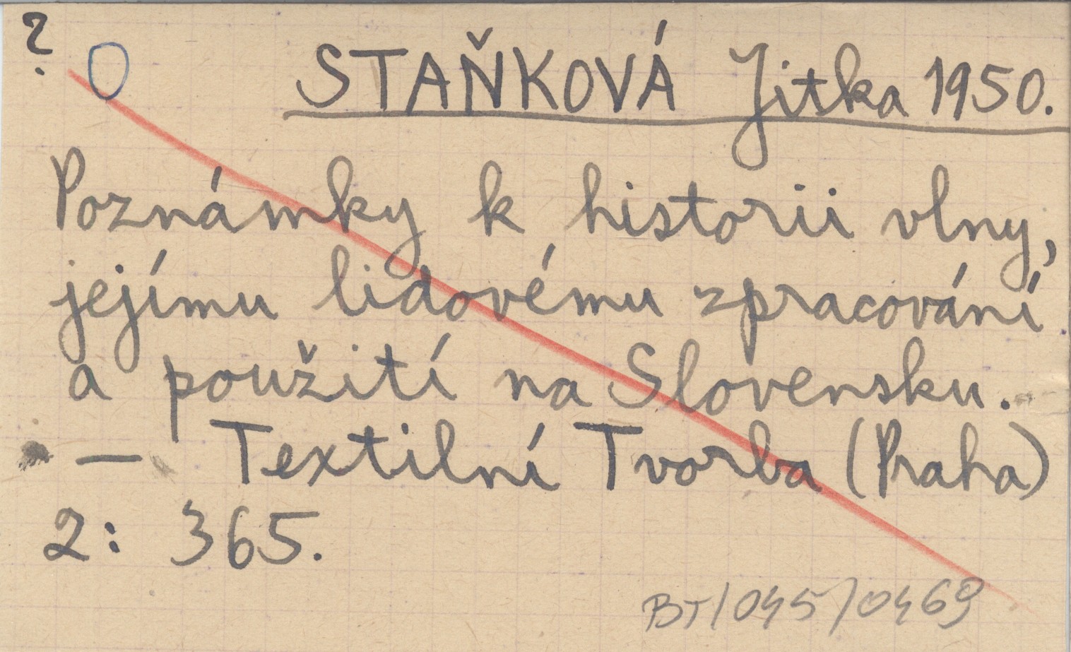 STAŇKOVÁ Jitka 1950 Poznámky k historii vlny, jejímu lidovému zpracování a použití na Slovensku.